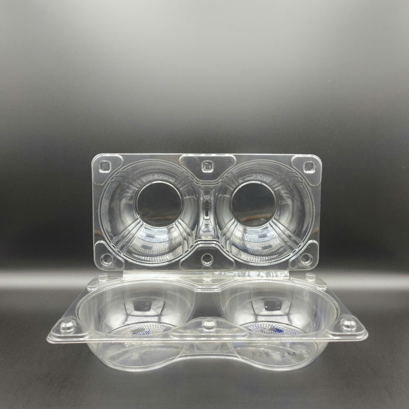 2 TRAI TAO is a food-grade PET clamshell with two domed cavities purpose-built for small to medium apples. Each cavity cradles one fruit to reduce impact and stop rolling during transport. The integrated snap-lock lid closes quickly and securely, while the raised rim and reinforced ribs deliver rigidity and maintain a clean shape under stacking. Stack-lock feet improve stability in crates and on shelves, and the flat lid panel accepts branding labels, barcodes, tamper seals, or traceability QR codes. Options include 30–80% rPET content, vent holes, and anti-fog coating to suit cold-chain display. A professional packaging solution for supermarkets, modern fruit retailers, grab-and-go programs, and chilled delivery, also compatible with kiwis or similar-sized fruit