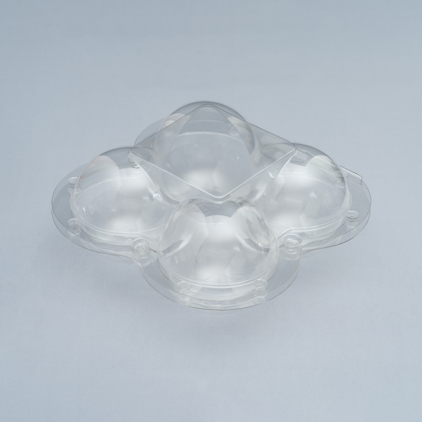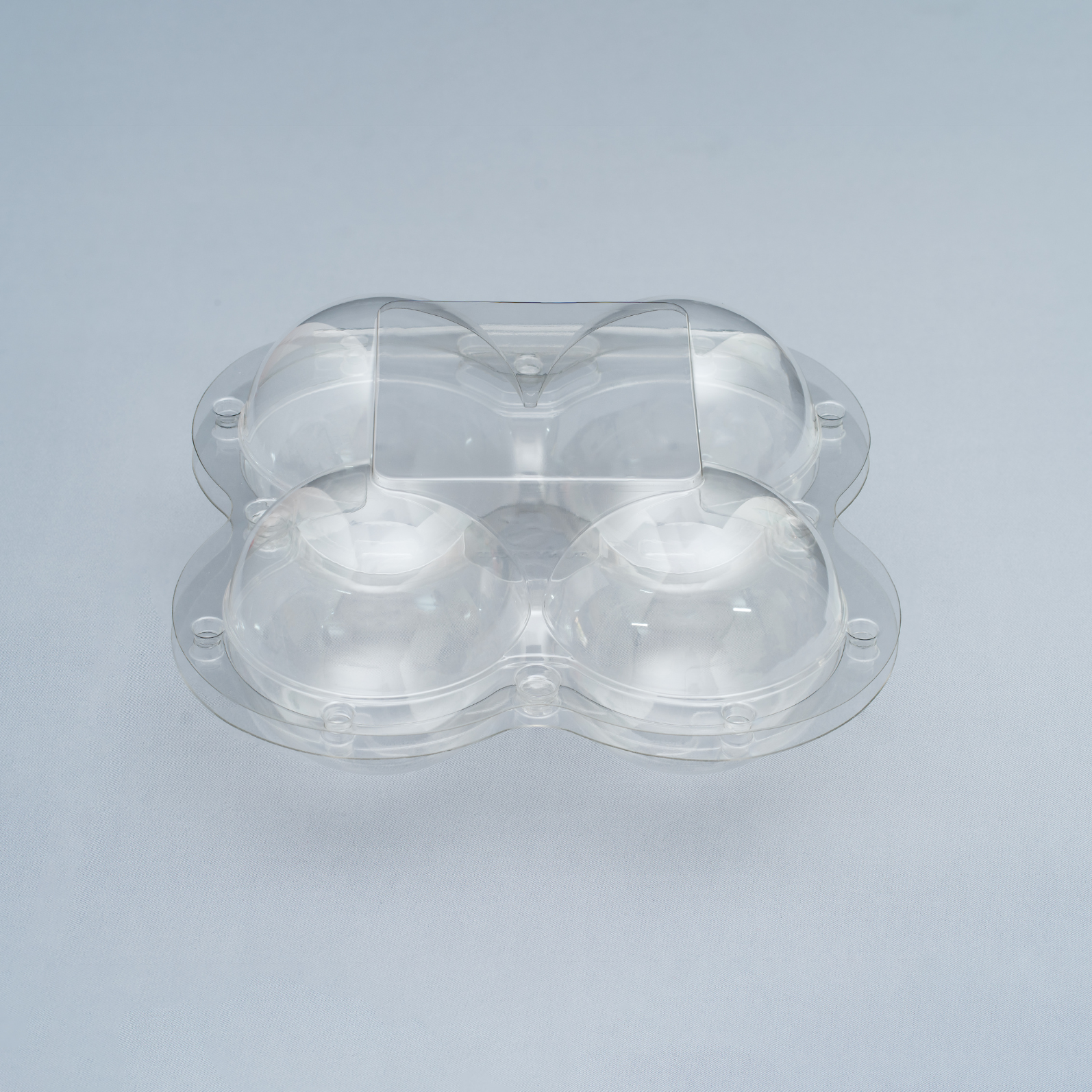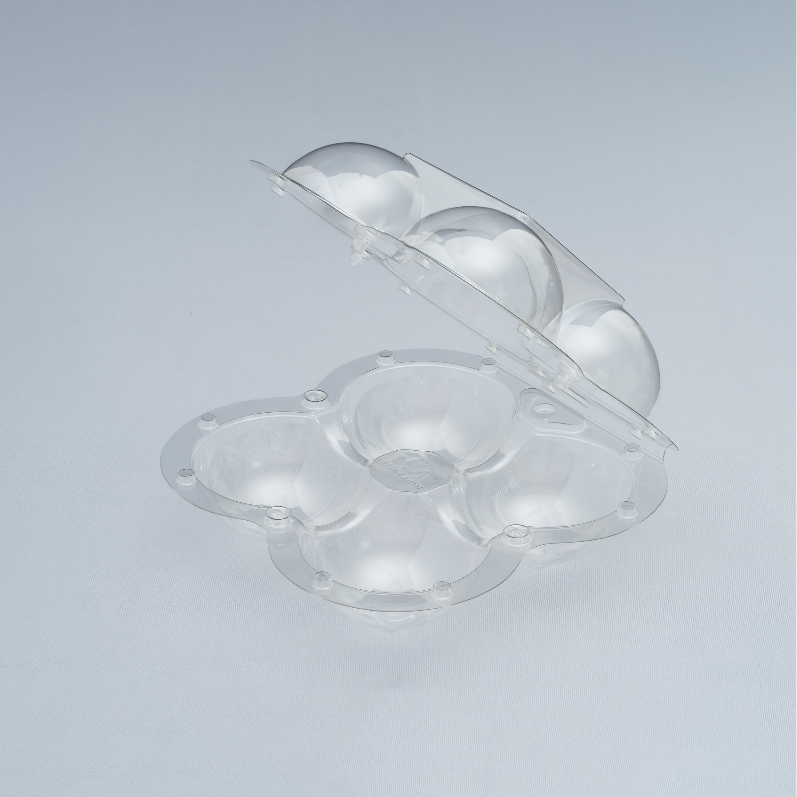 4 TRAI TAO is a food-grade PET clamshell featuring four domed, contoured cavities that cradle each apple, reducing impact and preventing rolling in transit. The integrated snap-lock lid closes quickly and securely, while the raised rim and reinforced ribs deliver rigidity and maintain shape under stacking. Stack-lock feet improve stability in cartons and on shelves, and the flat lid surface accepts branding labels, barcodes, tamper seals, or traceability QR codes. Options include 30–80% rPET content, vent holes, and anti-fog coating to support chilled displays and cold-chain delivery. Designed for a clean, premium presentation, this pack is ideal for supermarkets, modern fruit retailers, and grab-and-go programs, and also fits kiwis or similarly sized fruit