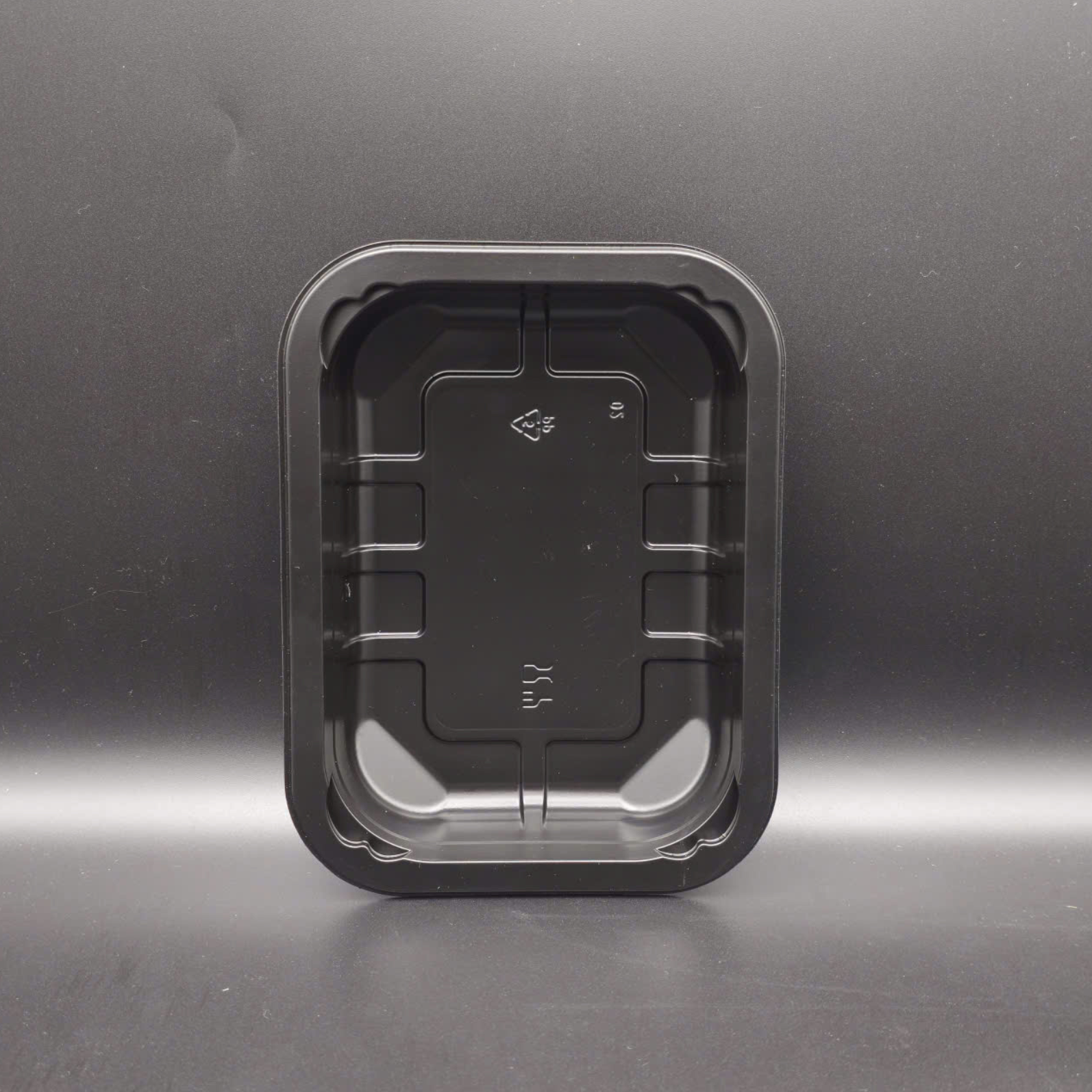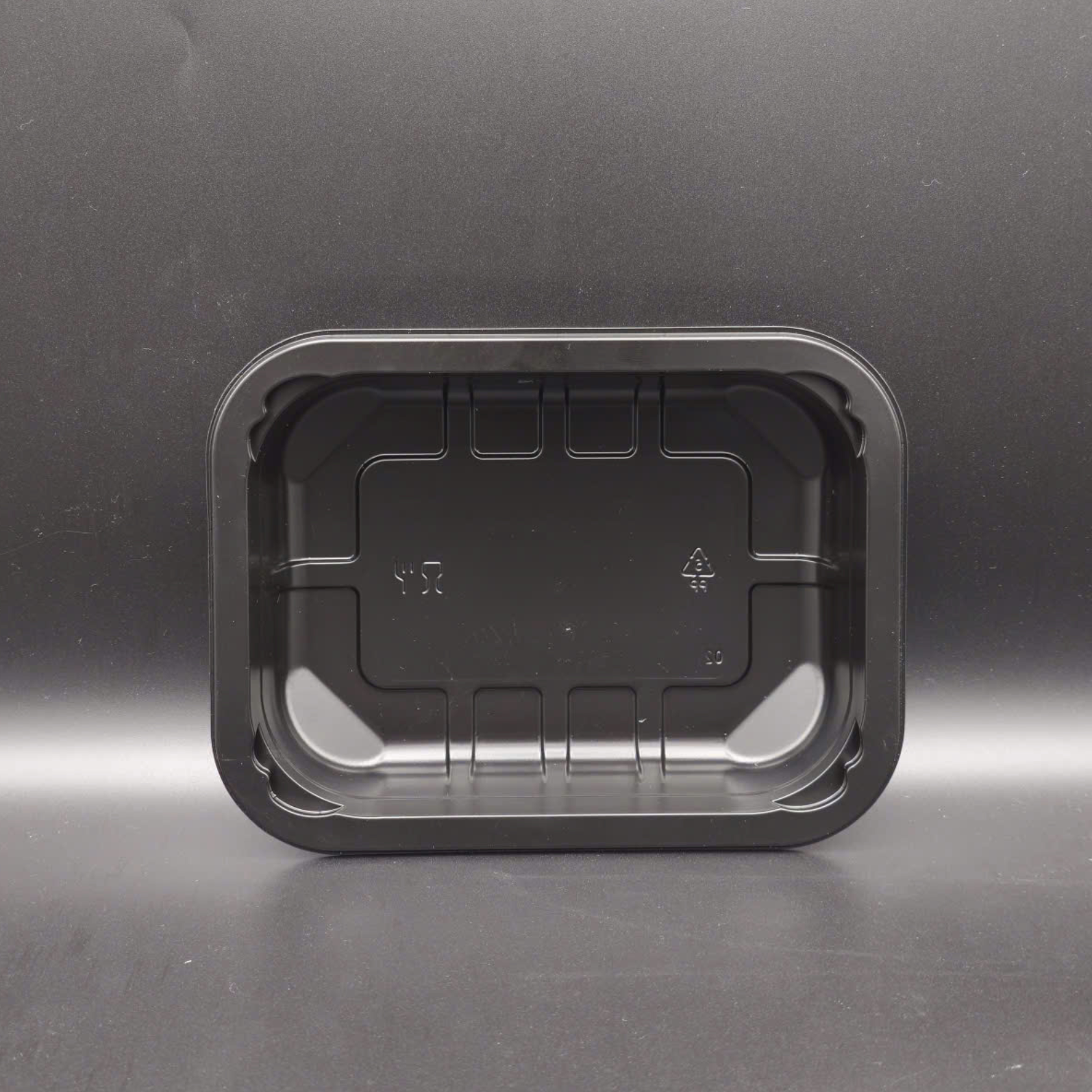Formed from food-contact-safe material, the HD-05A presents products on a clean white surface for instant quality inspection. Stiff sidewalls resist bending on the scale, while the drainage/ribbed base gathers juices and adds strength so packs stay tidy and durable. The high, even flange grips PE/PP overwrap or shrink film for quick, tight seals; pair with an absorbent pad for premium appearance. Molded stacking feet align securely to save shelf/storage space and travel safely. Suitable for chilled pork, poultry, beef, fish/seafood, and ready-to-cook produce. Wipe clean; keep away from microwaves/ovens and high heat; recyclable where facilities exist
