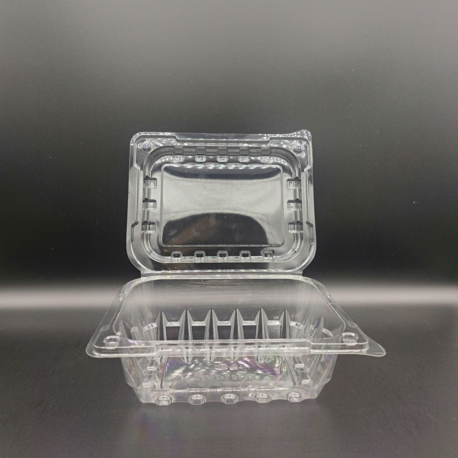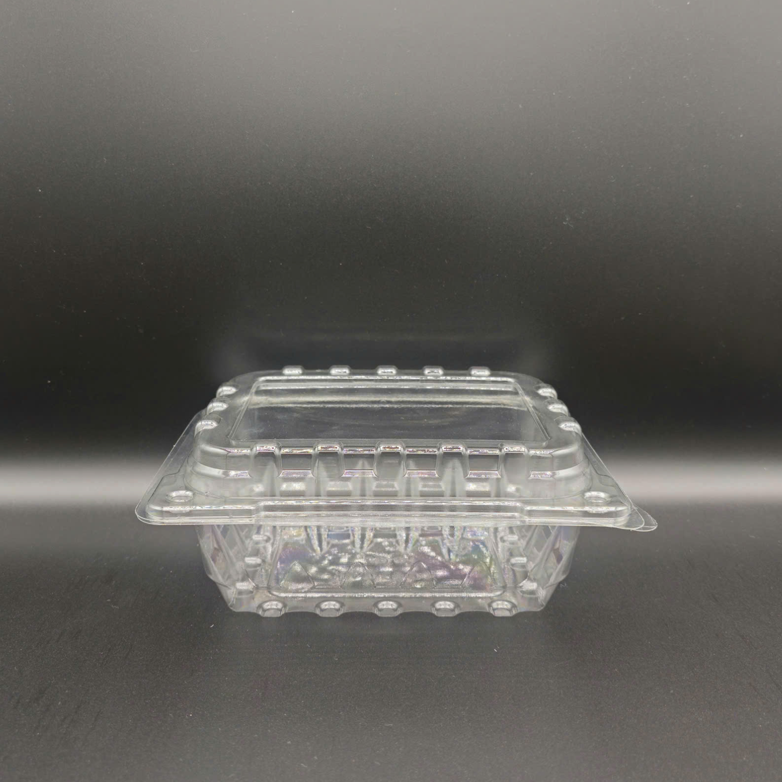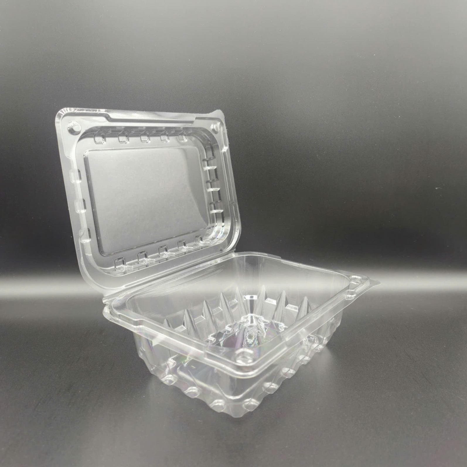 The JB-S1 is a food-grade PET thermoformed clamshell featuring an integrated hinged lid with a perimeter snap-lock for quick, secure sealing. Triangular reinforcement ribs along the walls deliver high rigidity, maintaining shape and ensuring safe, stable stacking on shelves or transport trays. A raised interior base helps separate contents from the bottom for light moisture control, while the flat lid surface is perfect for branding labels, barcodes, tamper seals, or traceability QR codes. Available options include rPET content, vent holes, and anti-fog coating to support chilled display and cold-chain logistics. Clean and space-efficient, JB-S1 suits cut fruit, mini salads, toppings, nuts, and desserts across supermarkets, convenience stores, deli counters, and grab-and-go programs.