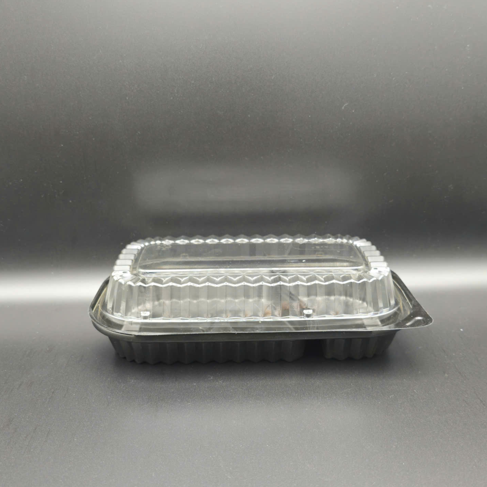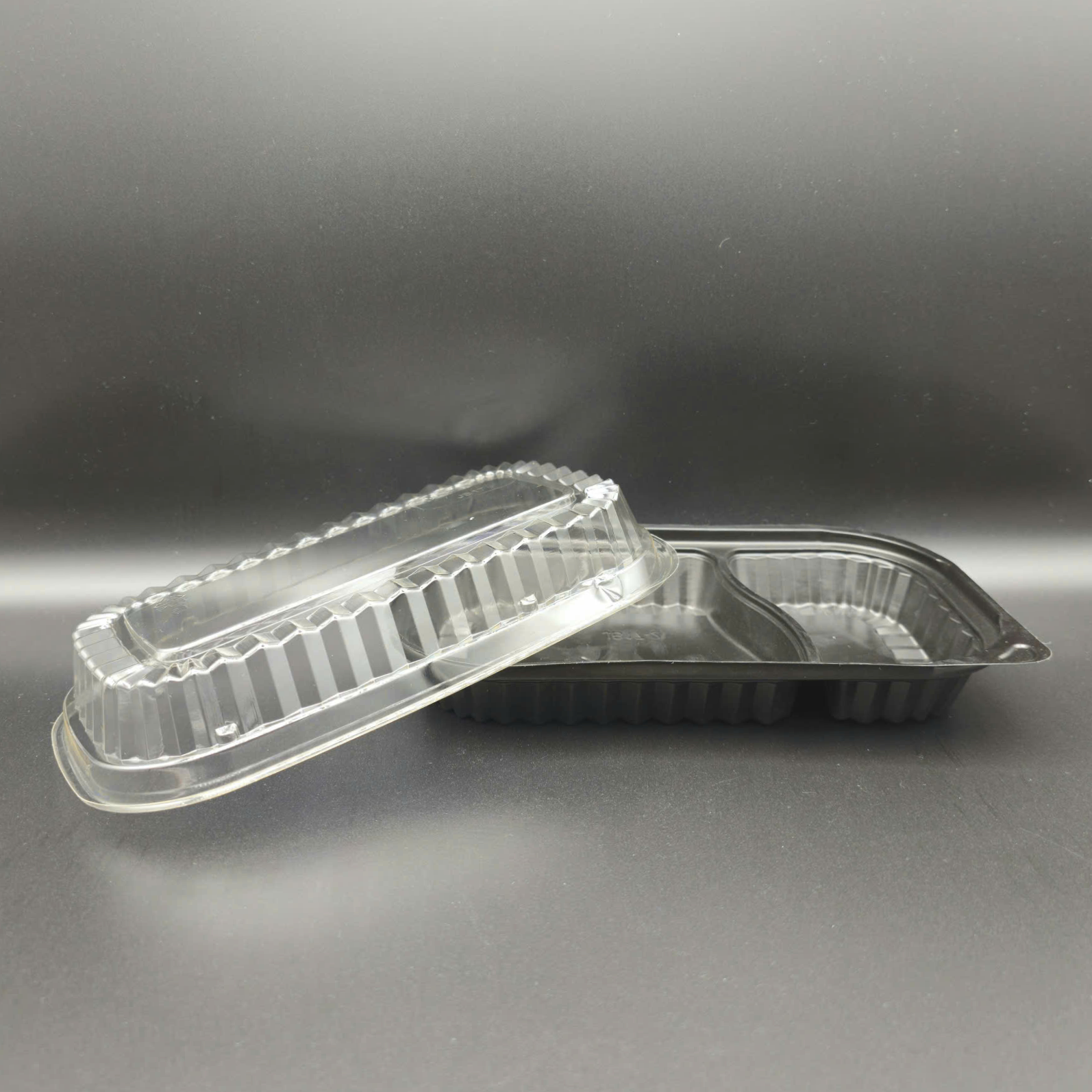 The JB17-2 is a compartmented food container designed for rice meals or sushi with condiments, featuring a sturdy black base and a clear PET lid that highlights the product on display.
