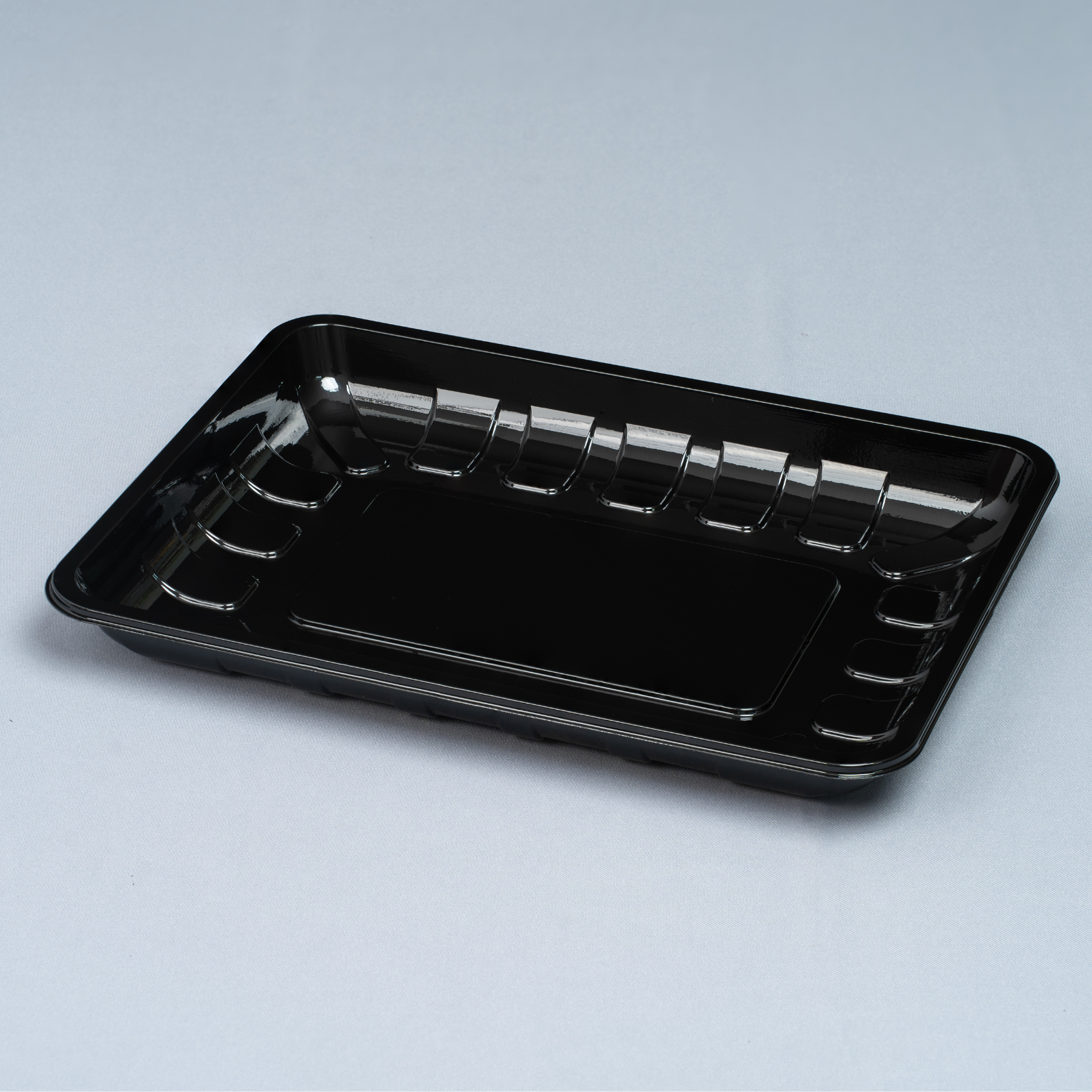 The M15 tray is a versatile flat-format container widely used for fresh meat, seafood, vegetables, and ready-to-cook foods. Its shallow base and ribbed sides improve rigidity and help channel excess liquid away from the product surface. The sleek black finish enhances the premium look, making colors of fresh produce stand out. The sturdy rim supports easy stacking and compatibility with automatic sealing or film wrapping systems. Made from food-grade PP or PET, M15 ensures durability and compliance with food safety standards. Perfect for supermarkets, delis, and processing facilities requiring hygienic, reliable, and visually appealing packaging.