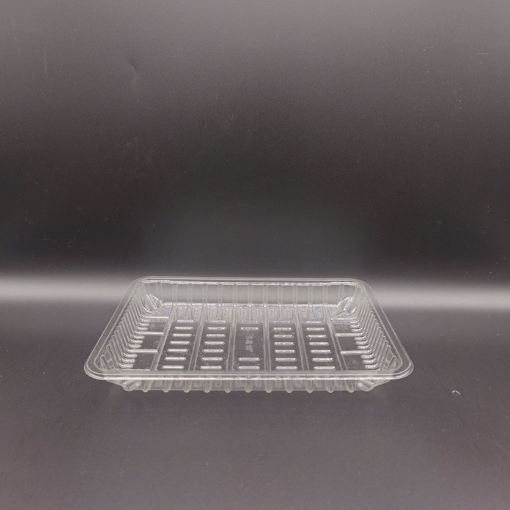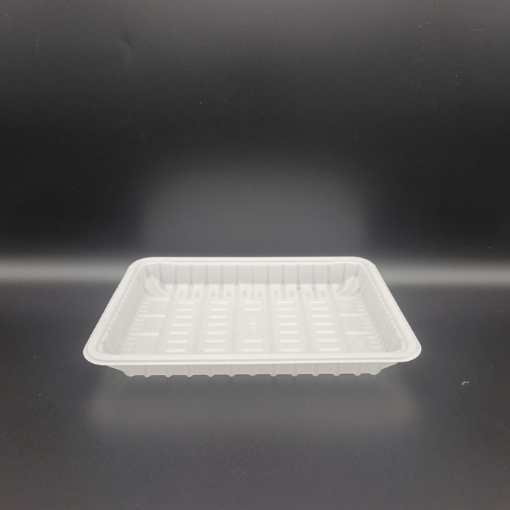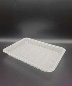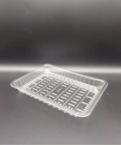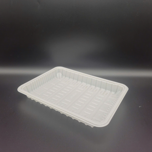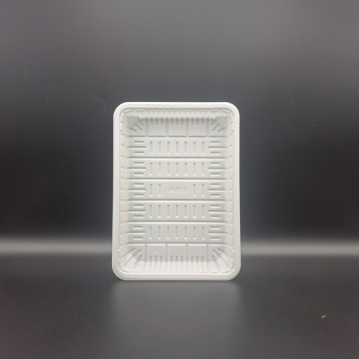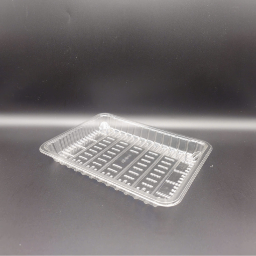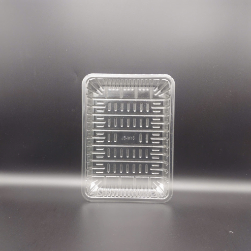 The M16 is a thermoformed food tray designed for safe packaging of pork, beef, chicken, fish, seafood, and cut vegetables. Its grooved base and raised ventilation ribs create airflow channels that minimize liquid accumulation in chilled displays, keeping products dry and fresh in color. The tall rim and reinforced ribs prevent deformation during film wrapping or MAP sealing, while optional soaker pads enhance moisture absorption. Lightweight yet durable, the tray stacks stably for efficient storage and transport. The flat top surface allows easy labeling, barcoding, and traceability marking—making M16 an ideal solution for supermarket, convenience store, and central kitchen packaging applications.