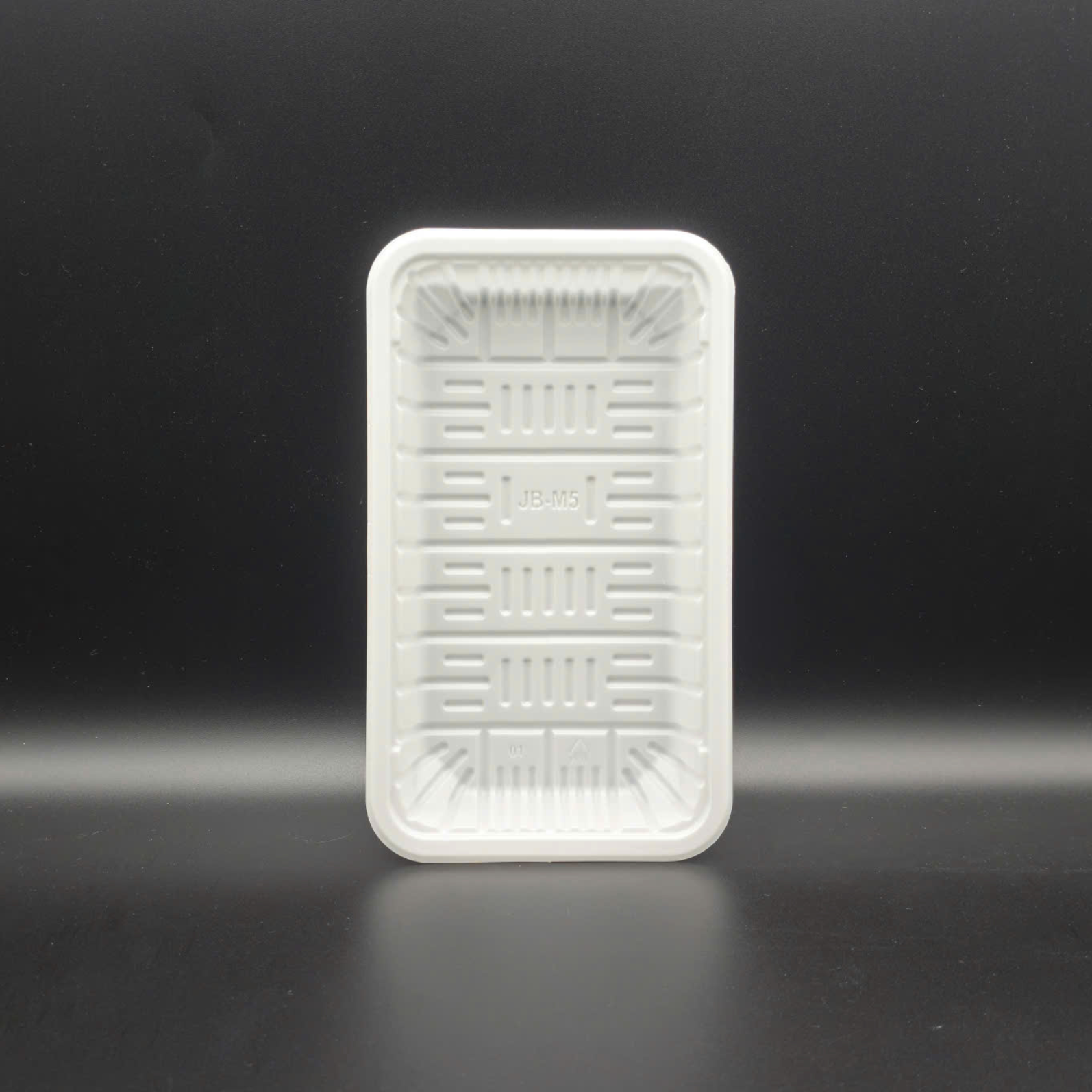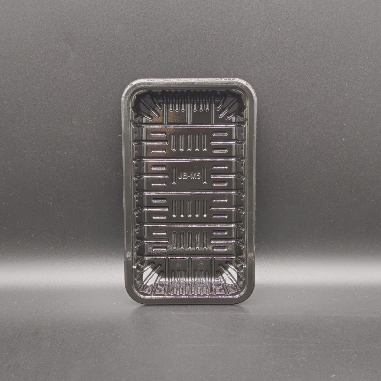 The M5 meat tray is a versatile packaging choice for retailers who need a smaller, smarter option for fresh products. Designed from rigid, food-grade plastic, it protects pork, beef, chicken, or seafood portions during chilling, transport, and display. The rectangular shape with raised ribs lifts meat away from liquid, reducing mess and helping cuts keep their natural colour for longer. Smooth inner walls and rounded corners make loading, stacking, and wrapping fast and efficient on manual or automatic lines. M5 trays are available in white, black, and clear versions so you can match colour to product or branding: white for cleanliness, black for premium lines, and clear for full visibility. Compact sizing saves shelf space and fits perfectly into standard refrigerator trays, delivery boxes, and meal prep kits. Whether you are running a supermarket, butcher shop, online fresh store, or central kitchen, M5 delivers clean, consistent professional presentation every day
