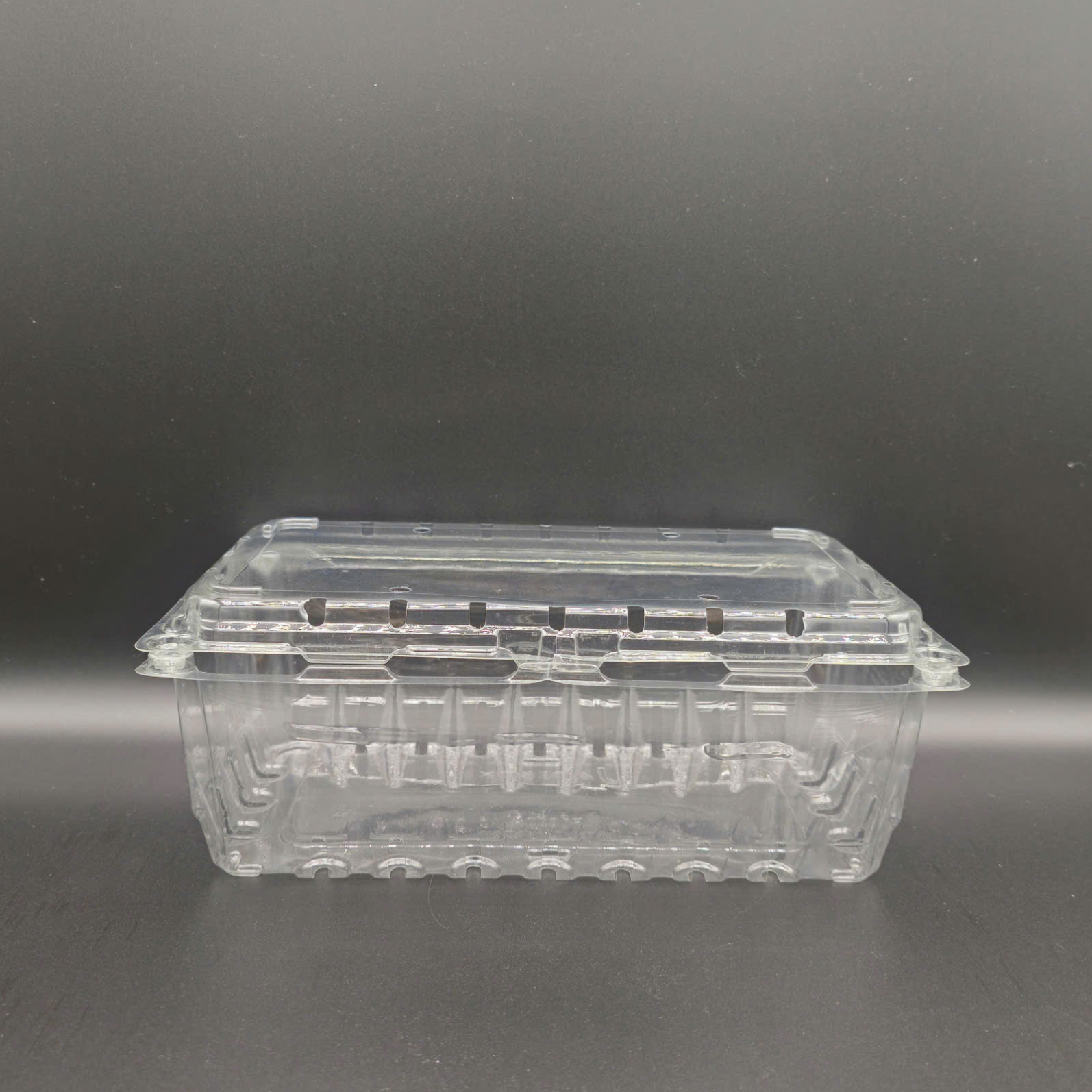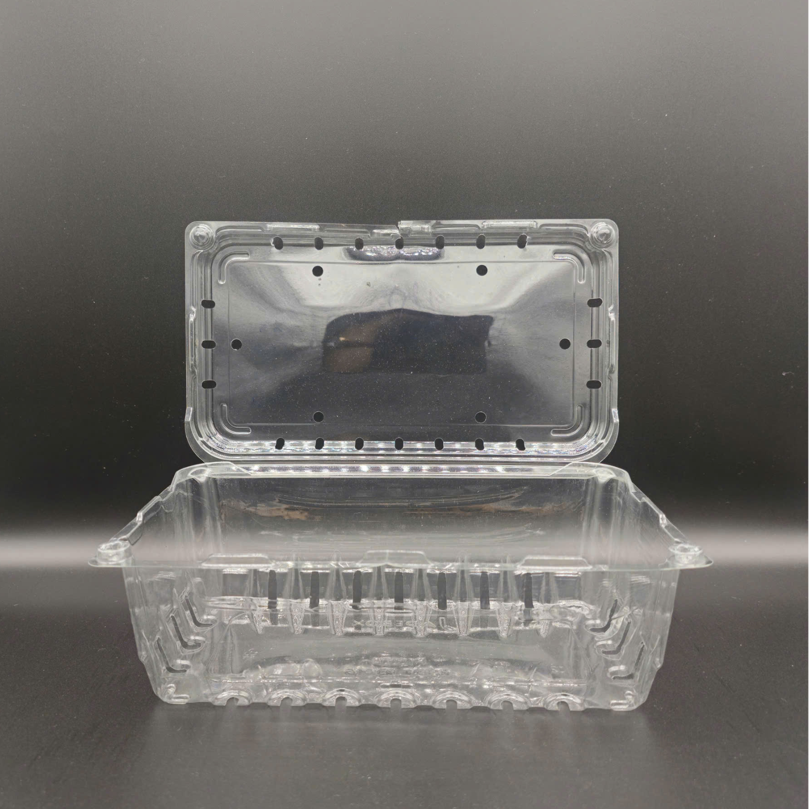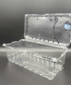 The P1000A is a food-grade PET clamshell with large capacity and a vented hinged lid to balance humidity and temperature, minimizing condensation in chillers and keeping produce dry and fresh. A perimeter snap-lock enables fast, secure closure, while reinforced ribbed walls deliver rigidity for safe, stable stacking during display and transport. The raised base assists light drainage, and the flat lid panel accepts branding labels, barcodes, tamper seals, or traceability QR codes. Options include 30–80% rPET content and anti-fog coating for cold-chain presentation. Engineered for a clean, premium look, P1000A is ideal for strawberries, grapes, blueberries, cherry tomatoes, and herbs across supermarkets, convenience stores, deli counters, and grab-and-go programs