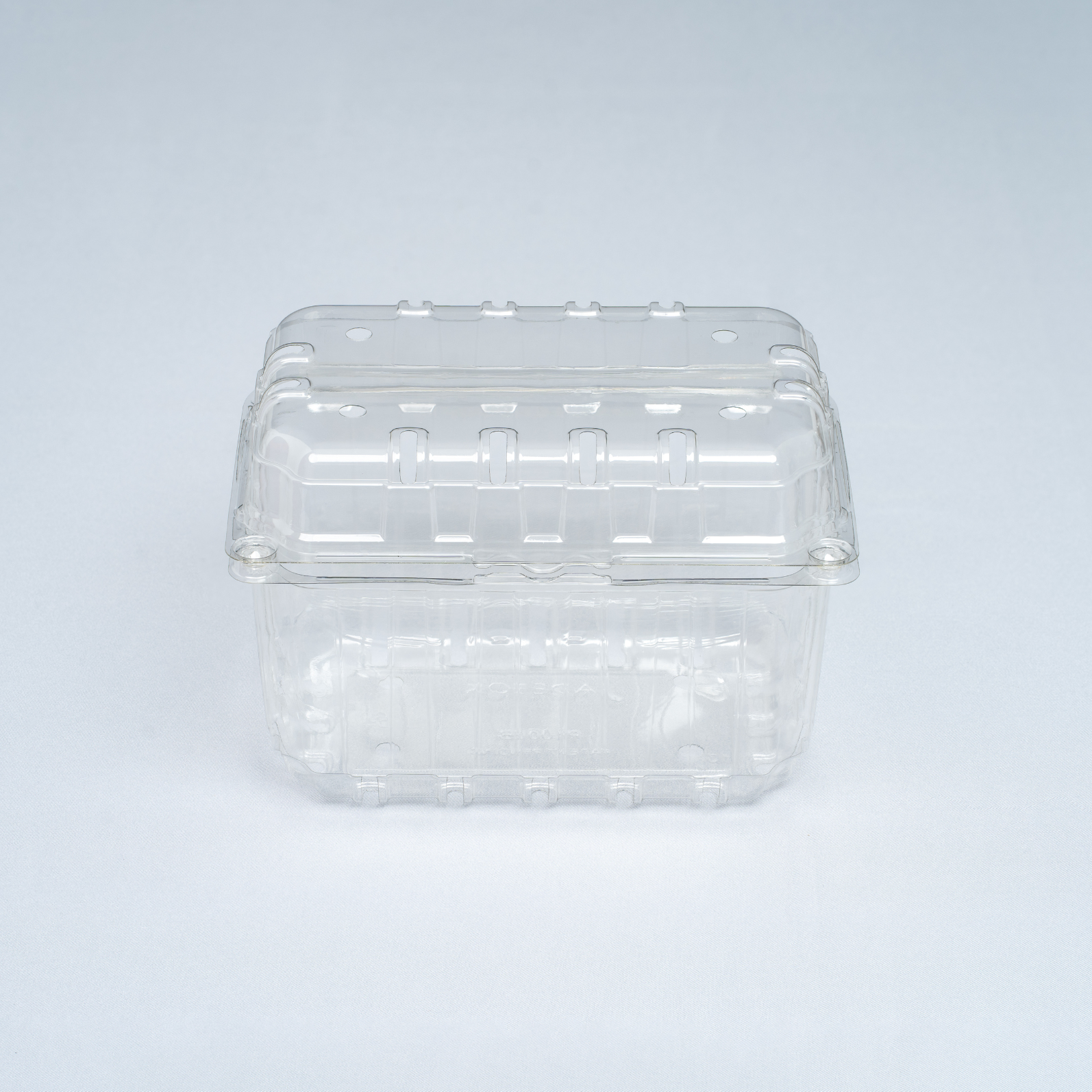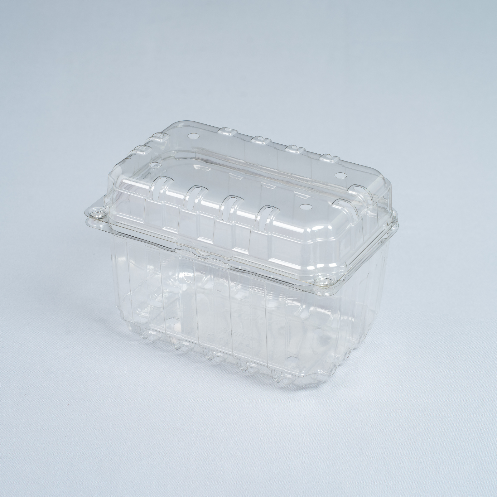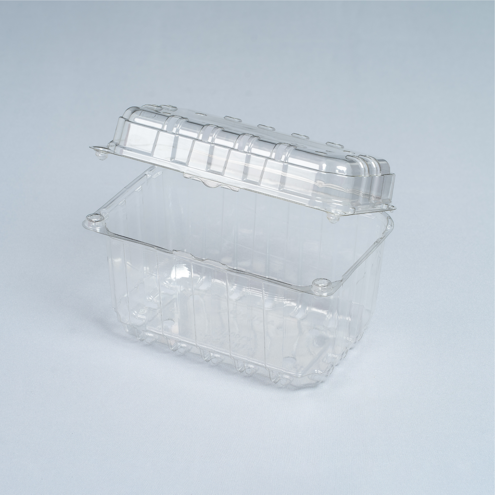 Made from food-grade PET, P1000B features a vented hinged lid that promotes air exchange, reducing condensation in chillers and keeping produce dry and fresh. A perimeter snap-lock enables quick, secure sealing, while reinforced ribbed walls and a sturdy base maintain shape for safe, stable stacking during display and transport. The raised interior base aids light drainage, and the flat lid panel accepts branding labels, barcodes, tamper seals, or traceability QR codes. Available options include 30–80% rPET content, custom vent patterns, and anti-fog coating to support cold-chain presentation. Clean, durable, and space-efficient, P1000B is ideal for strawberries, grapes, blueberries, cherry tomatoes, and fresh herbs across supermarkets, fruit retailers, and grab-and-go logistics.