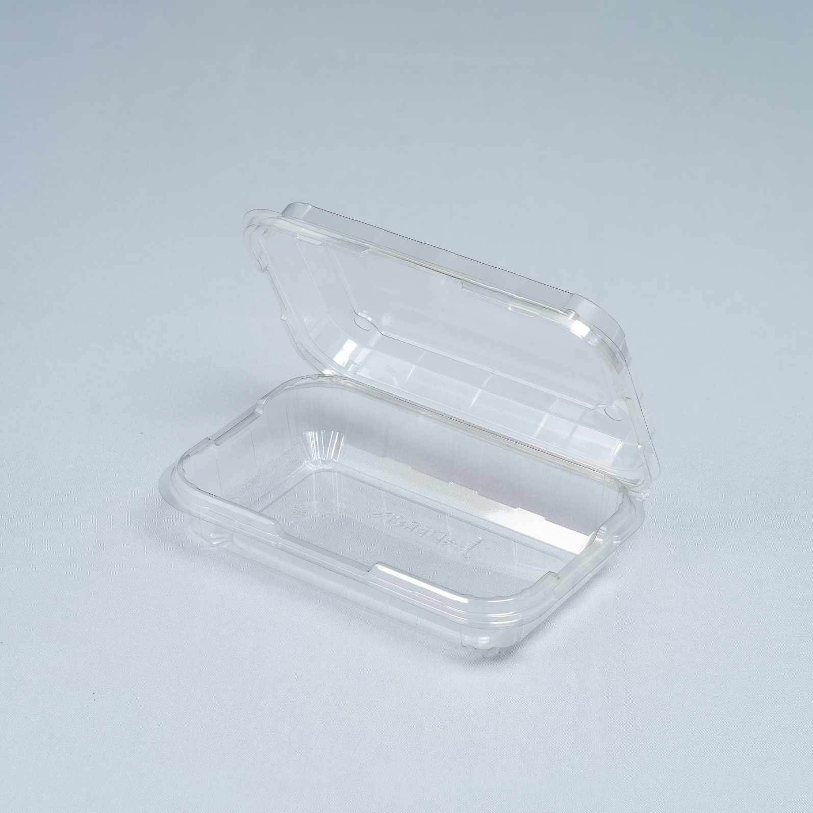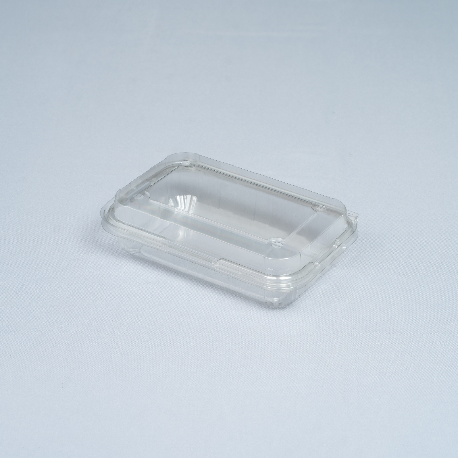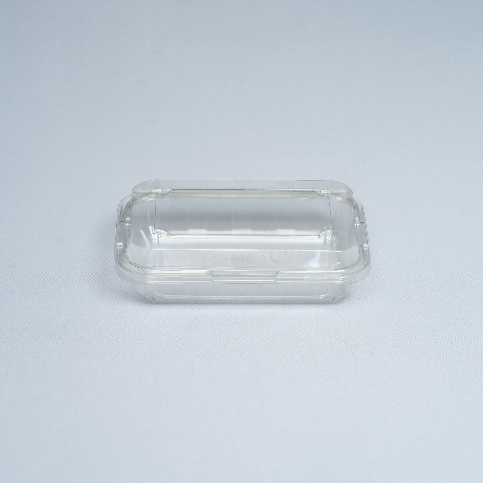 P350A is a slim, clear PET clamshell with an integrated snap-lock lid. Ribbed walls provide rigidity for stable stacking, and the flat lid takes labels/QR codes. Ideal for okra, baby cucumbers, long chilies, mini roll cakes, and other grab-and-go items
