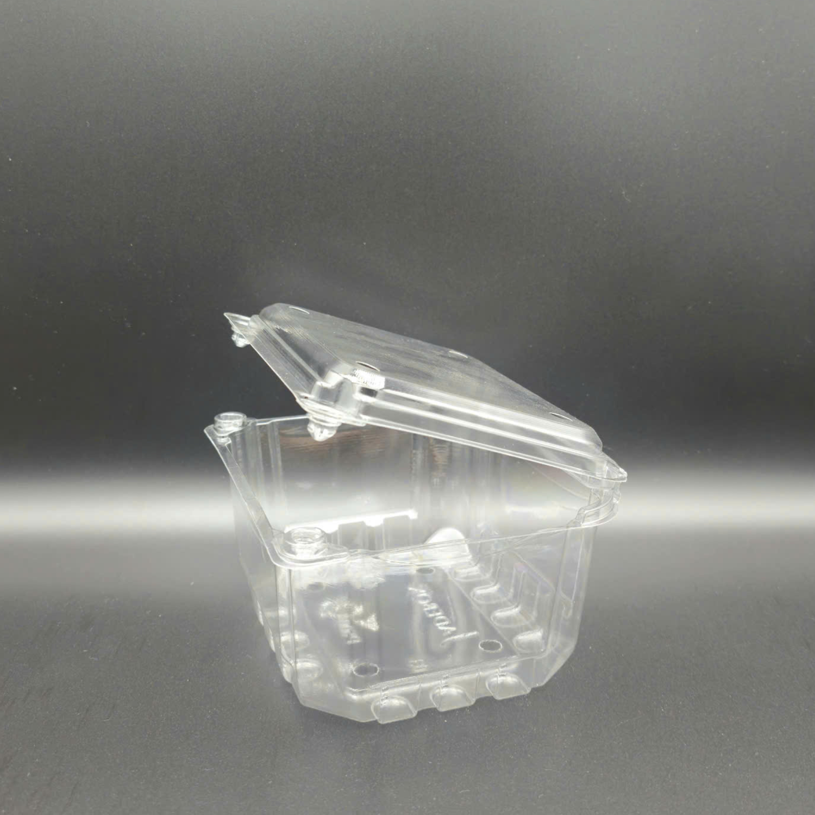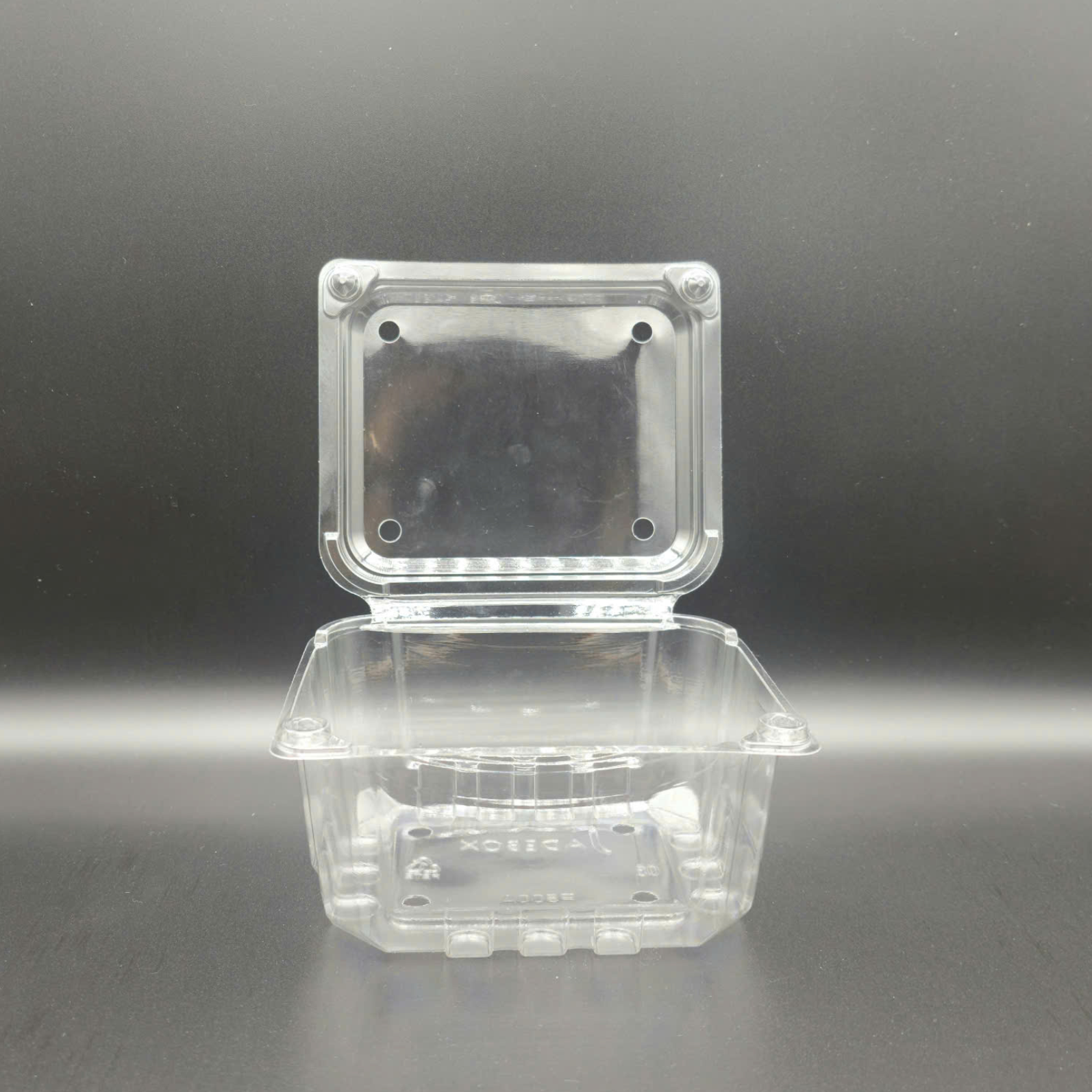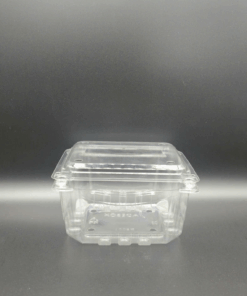 The P500A thermoformed PET clamshell features a hinged, snap-lock lid and ventilation holes to reduce condensation. Clear, rigid walls protect and showcase contents while stacking securely. Perfect for strawberries, cherry tomatoes, salad toppings, nuts, and grab-and-go desserts