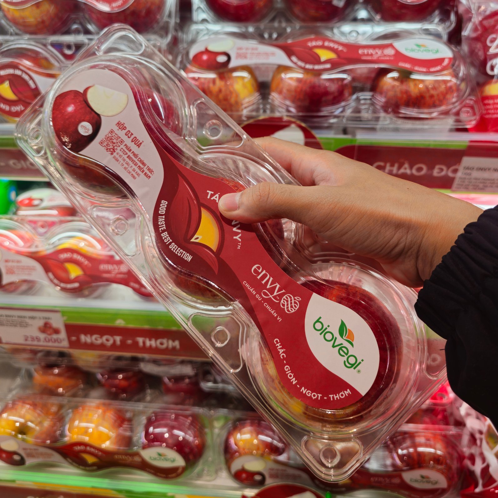 JB-T3 là hộp định hình 3 ngăn dành cho trái cây cỡ trung như táo, lê, hồng giòn. Mỗi khoang ôm trọn một trái, hạn chế va đập và lăn trượt khi vận chuyển; gân chịu lực quanh thân tăng độ cứng, giữ form đẹp khi xếp chồng trên kệ hoặc trong thùng. Nắp bản lề gắn liền với khóa gài “snap” đóng mở nhanh, chắc chắn; bề mặt trong suốt tôn màu tự nhiên, nâng sức mua tại điểm bán. Khu vực phẳng ở nắp/đáy thuận tiện dán tem, mã vạch và nhãn truy xuất nguồn gốc; có thể kết hợp tem niêm phong để tăng tính chống mở. Giải pháp trưng bày chuyên nghiệp cho chuỗi siêu thị, cửa hàng trái cây hiện đại và kênh giao hàng lạnh.