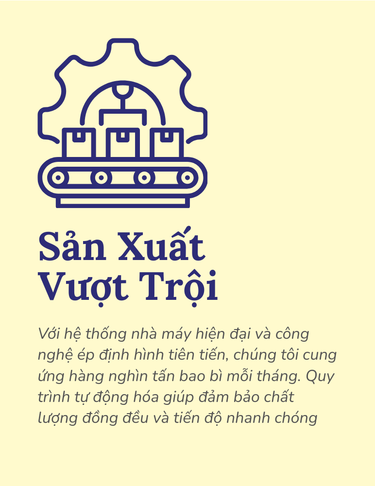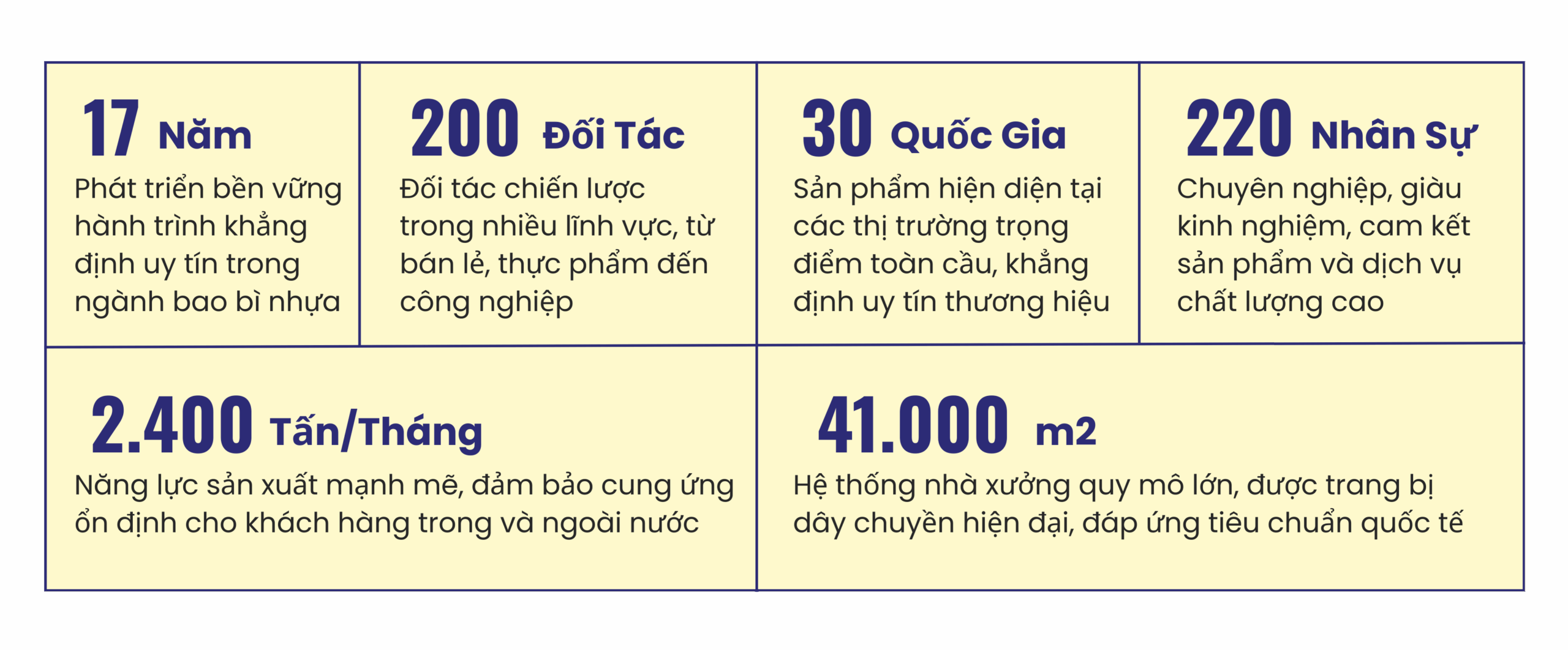 Nhà sản xuất lâu đời trong lĩnh vực màng nhựa và sản phẩm nhựa định hình, phục vụ hơn 800 khách hàng tại 30 quốc gia. Với hệ thống thiết bị hiện đại và quy trình kiểm soát chất lượng nghiêm ngặt sẽ cam kết mang đến sản phẩm chất lượng cao – giá cạnh tranh – giao hàng nhanh cho nhu cầu của khách hàng toàn cầu